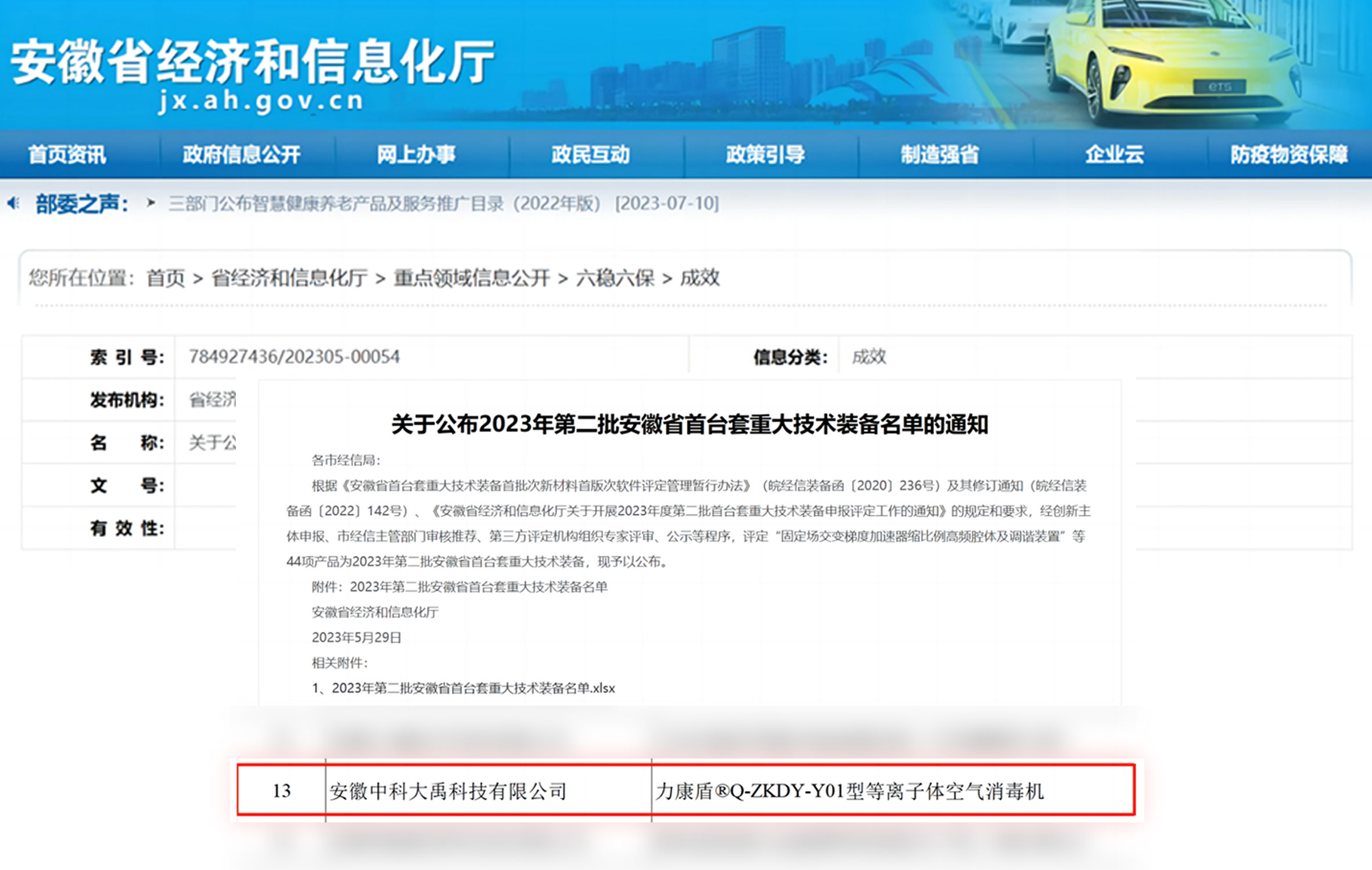力康盾?ZKDY-G-180-P型等離子體空氣消毒機入選2024年度第三批安徽省首臺套重大技術(shù)裝備,評定等級:國內(nèi)先進(jìn)