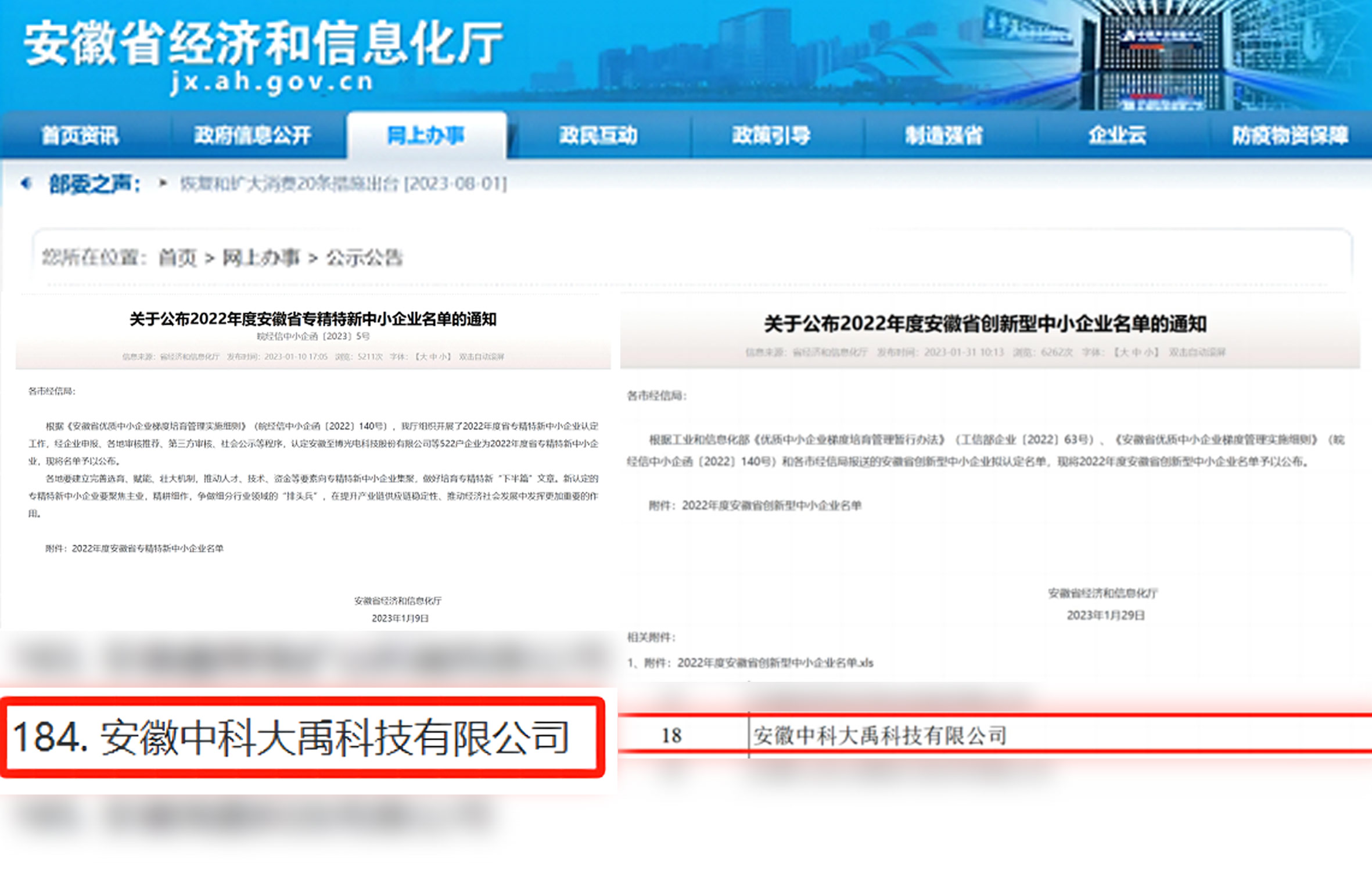 入選2022年度安徽省專精特新中小企業(yè) 入選2022年度安徽省創(chuàng)新型中小企業(yè)名單